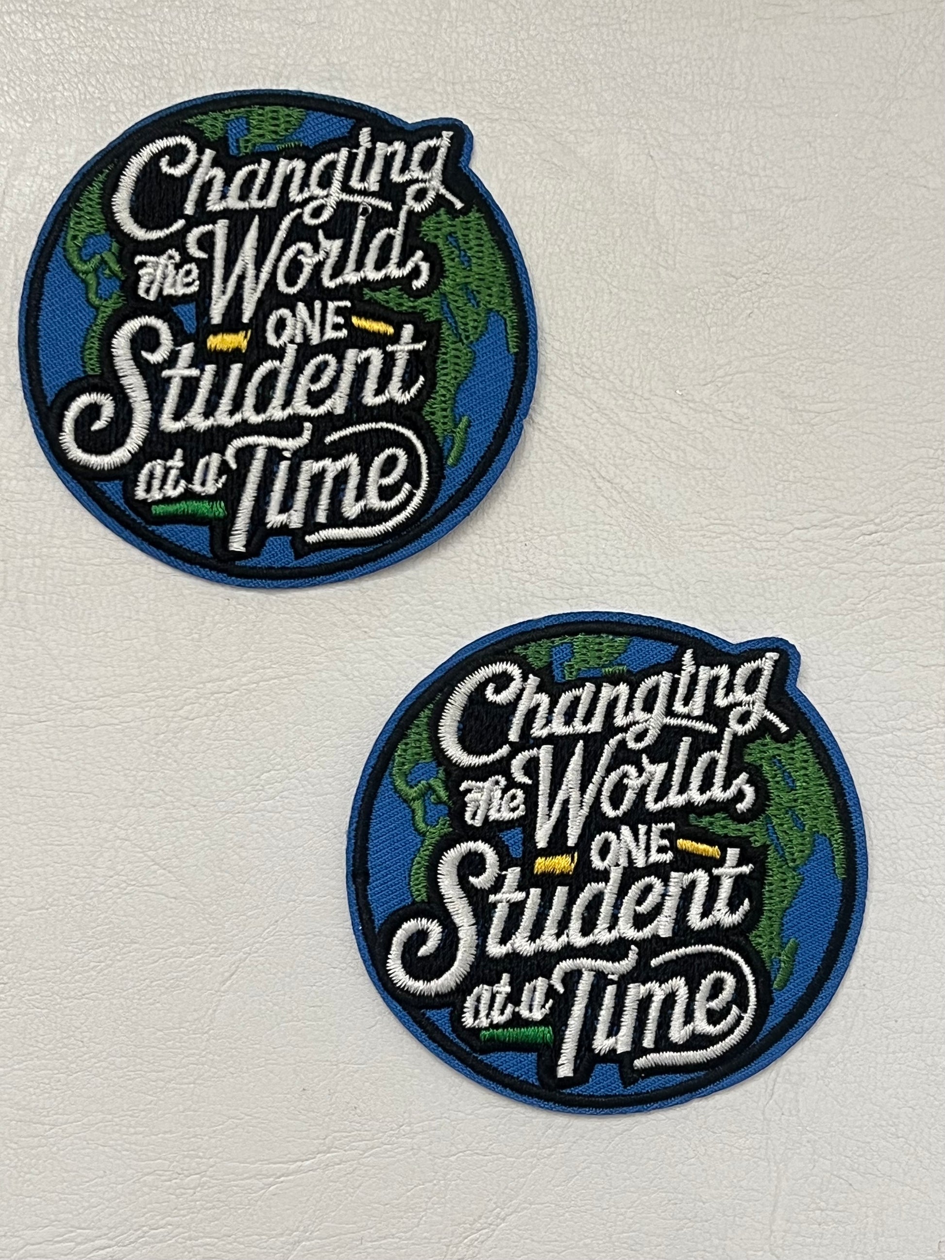 An inspirational patch celebrating the power of education and the belief that every student has the potential to change the world. Perfect for teachers, mentors, and anyone who helps shape future leaders.