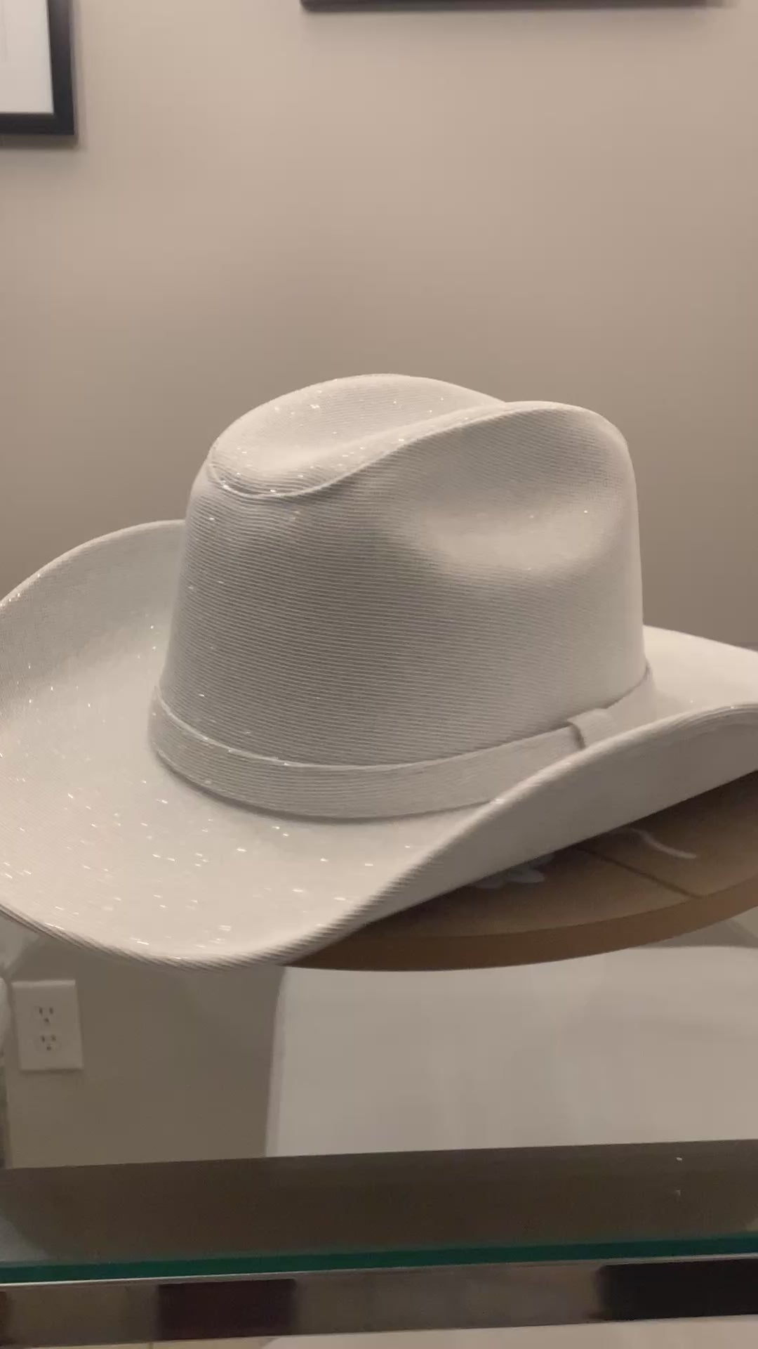 This cowboy is handmade with the finest material. This western hat is white with glitter sparkles. Comes with a satin enclosed to protect hair from sweating. This hat is great for your next western event.