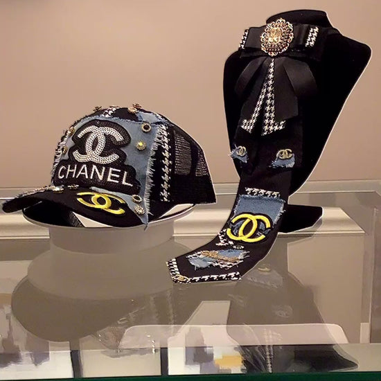 TM Freestyle hat and Tie Combo. This set comes with a Black hat and Tie with inspired brand. Both have denim and jewels to give it the extras to stand out.