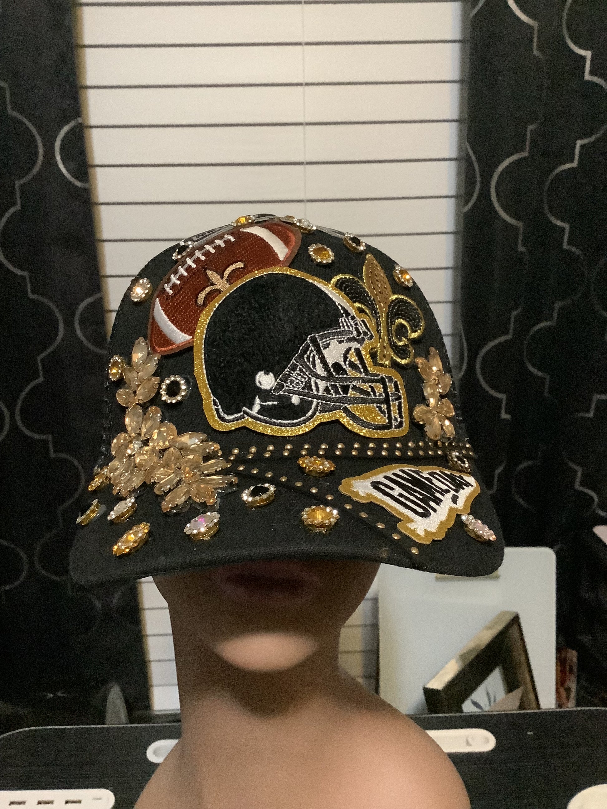 Bring the energy to the Dome or the tailgate with this Custom New Orleans Saints Gameday Hat. Designed in iconic black and gold, this hat delivers comfort, style, and true Who Dat Nation pride. Perfect for repping your team on gameday, at parties, or anywhere you want to show your NOLA spirit.