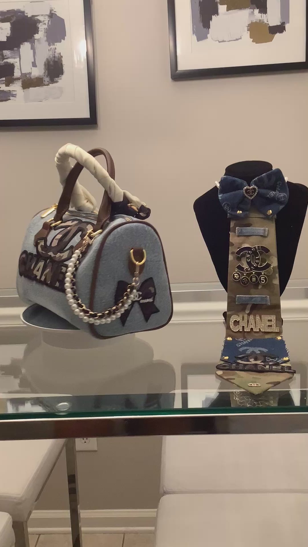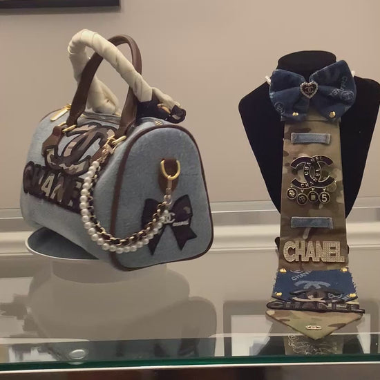 TM Freestyle handbag and Tie Combo. This set comes with speedy bag and Tie. Both very unique. The Tie is army material with inspired brand accessories. The purse is a speedy denim bag with brand accessories. You can also use this purse as a crossbody. Comes with a long brown purse strap.